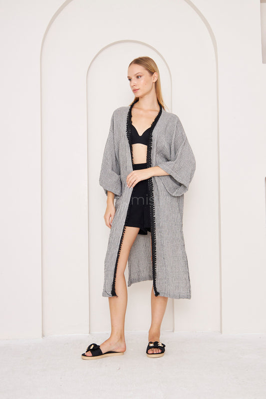 Effortlessly chic, our Boho Kimono collection adds a touch of bohemian flair to any outfit. Embrace your inner free spirit and stand out in style. Discover the bohemian elegance with our handmade Boho Kimonos. Crafted with sustainability in mind, each piece is timeless in style and ethical fashion. Perfect for the Boho-Chic seeking an exquisite, eco-conscious addition to their wardrobe.