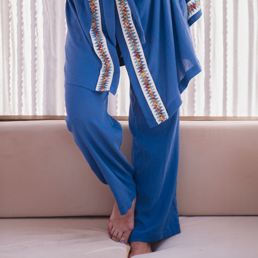 Touchy Boho Blue Pull On Cotton Pants with Elastic Waist