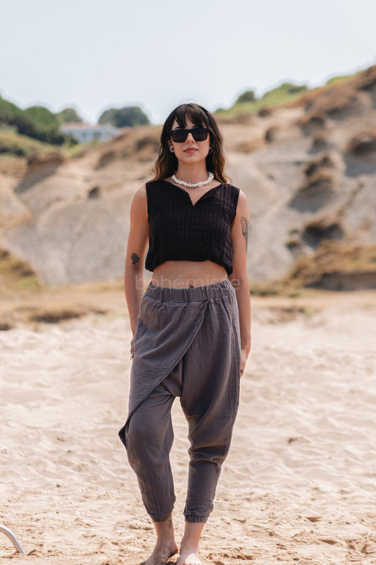 Cozy Boho Gray Muslin Organic Cotton Pants