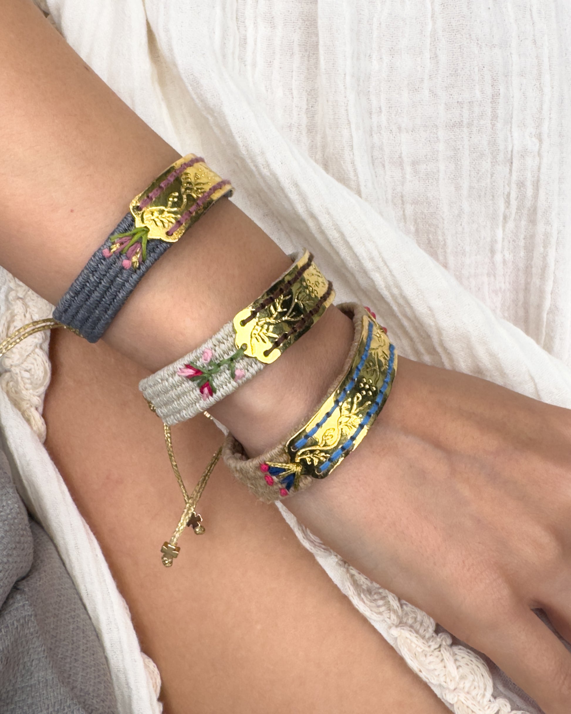 The Anatolian Touch Bracelet features a distinctive, **substantial, wide weave** that brings together ancient weaving techniques and powerful symbolism. Hand-loomed by an independent woman artist, this piece ensures maximum presence and makes a bold statement on your wrist.