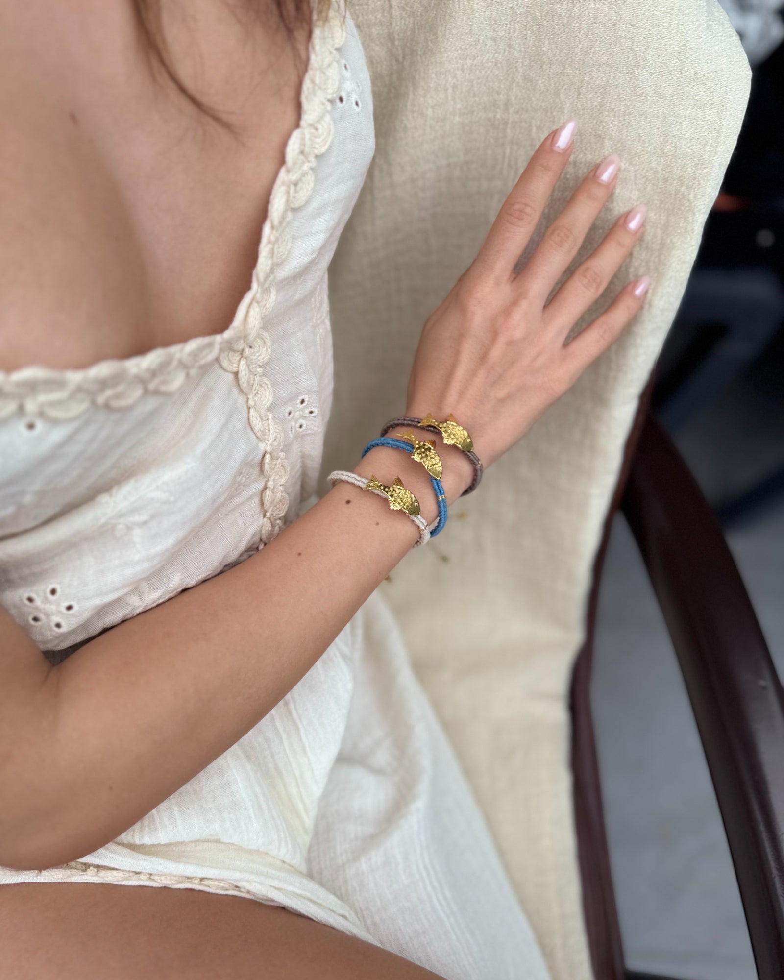 The Fish Talisman Bracelet is a beautifully symbolic piece, meticulously **hand-knotted** by an independent woman artist. This unique design blends the artistry of hand-weaving with the deep meaning of traditional symbols, offering both style and good fortune.